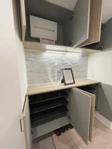 上部には扉付きの収納が付いています。