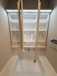 扉の片側には大きな一枚鏡が貼り込んであり、毎日の身だしなみチェックに活躍してくれそうです。