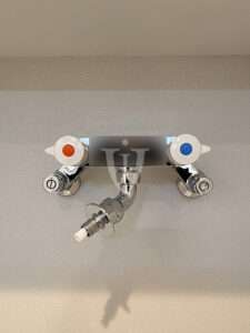 お湯で洗濯ができて便利な混合水栓を採用しています。