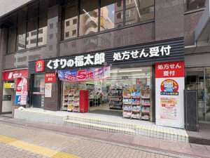物件から徒歩約5分のドラッグストア、くすりの福太郎です。