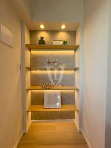 こちらのリビングには飾り棚が造り付けられており、花や置物など、お好きなデコレーションも楽しめそうです。