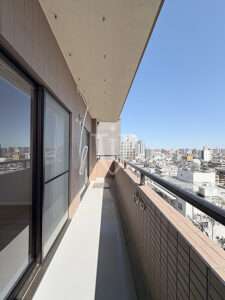 南東向きで明るいワイドスパンバルコニーです。