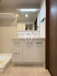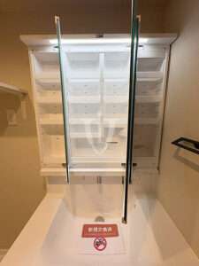 扉の片側には大きな一枚鏡が貼り込んであり、毎日の身だしなみチェックに活躍してくれそうです。