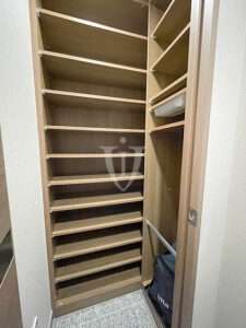 こちらのリビングには扉付きの可動棚収納が付いています。