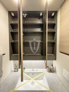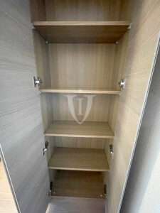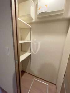 さらにドレッサー横には扉付きの可動棚収納が付いています。