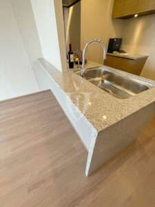 しっかりと出幅のある、ワークトップとフラットなカウンターが付いています。