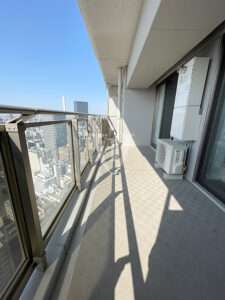 西向きで奥行きのあるワイドスパンバルコニーです。