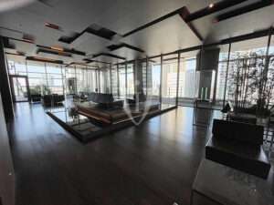 オートロックを抜け、1階のメインエントランスホールに広がるのは、水盤の上で光り輝くスワロフスキー・エレメントを使用したシャンデリアです。