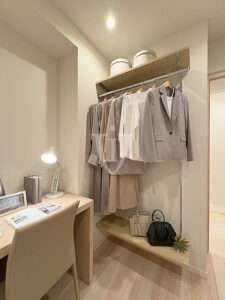 こちらのサービスルームにはオープンタイプのクローゼットが付いています。
