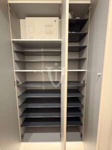 こちらのリビングには扉付きの可動棚収納が付いています。