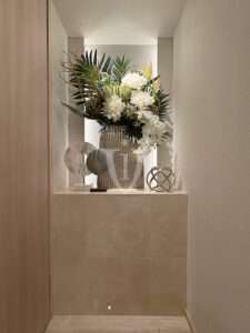 室内廊下にはニッチスペースが設けられており、花や置物など、お好きなデコレーションも楽しめそうです。