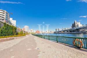 コンビニやスーパーなど近く、隅田川沿いの水辺散策も楽しめる暮らしやすそうな住環境です。