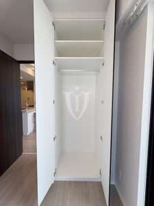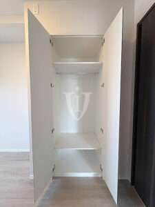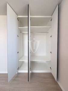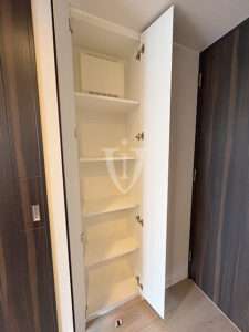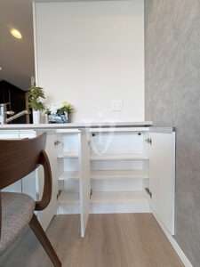 こちらのリビングには扉付きの可動棚収納が付いています。