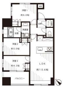 リビングとバルコニーに接する約4.5帖の洋室3です。