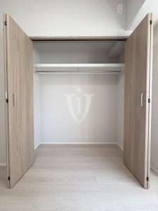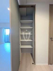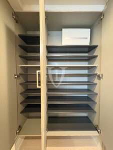 こちらのリビングには扉付きの可動棚収納が付いています。