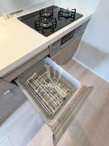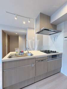 ウッド調パネルで高級感が演出されたシステムキッチンです。