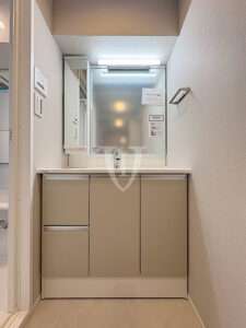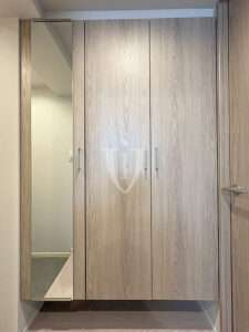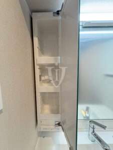 扉の片側には大きな一枚鏡が貼り込んであり、毎日の身だしなみチェックに活躍してくれそうです。