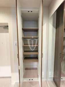 さらにこちらのリビングには扉付きの可動棚収納が付いています。