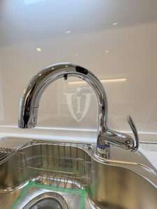 柔らかな曲線の輝きが美しい、浄水器内蔵のグースネック水栓を採用しています。