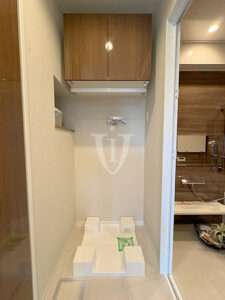 排水管の取り回しがしやすい高下駄式の防水パン採用のランドリースペースです。